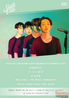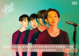 เอาใจแฟนคลับชาวไทยเป็นที่สุด เมื่อ Southclub นำโดยนัมแทฮยอน (Nam Tae Hyun) พร้อมเพื่อนร่วมวง Jang Won Young, Solomon Kim และ Kang Kun Ku เตรียมเยือนไทยมอบความสนุกทางดนตรีในรูปแบบ Music Fan Meeting สไตล์นัมแทฮยอน ในบรรยากาศพิเศษสำหรับ Amp ชาวไทยโดยเฉพาะ ในงาน SOUTHCLUB (Nam Tae Hyun) Music Fan Meeting in Bangkok วันเสาร์ที่ 11 พฤศจิกายน 2560 เวลา 18:00 น. ณ เอ็มซีซีฮอลล์ เดอะมอลล์บางกะปิ