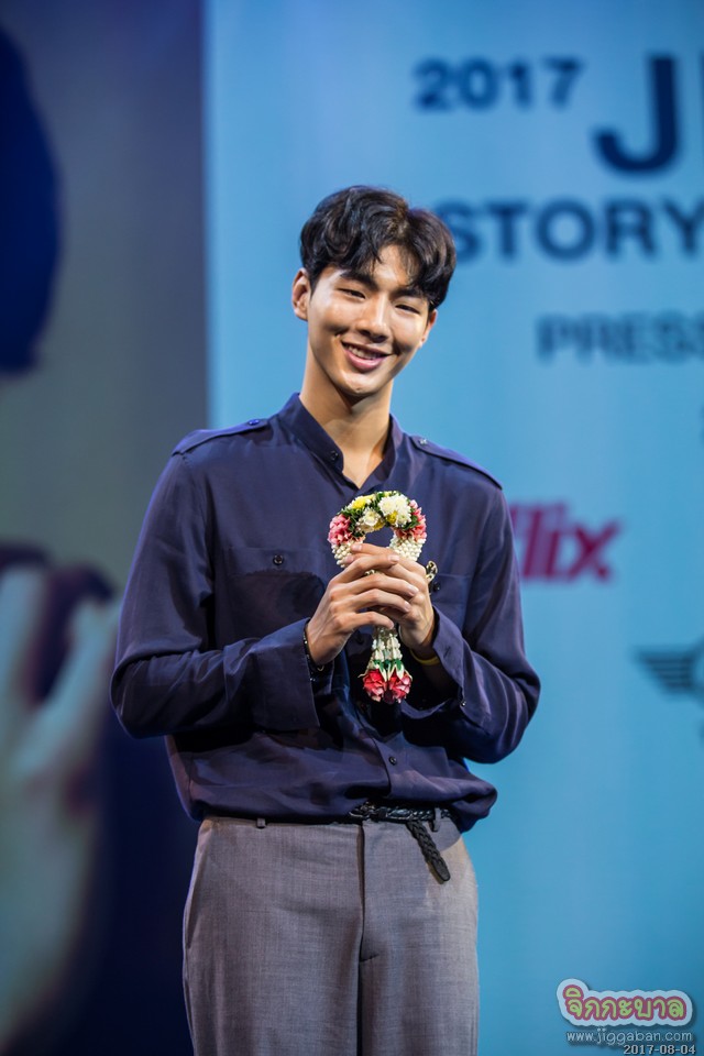 ออดอ้อนแฟนคลับชาวไทยตั้งแต่วันแรกที่เดินทางมาถึงประเทศไทยด้วยการมอบแฮชแทค #รอยยิ้มของสาวไทยในงานแถลงข่าวในวันศุกร์ที่ 4 สิงหาคม 2560 ณ อุลตร้าอารีน่า แอท โชว์ดีซี โดยมี วีเจสอง รับหน้าที่เป็นพิธีกร เผยว่าครั้งนี้เป็นการมาเมืองไทยเป็นครั้งแรก โดยส่วนตัวหลงรักประเทศไทยอยู่แล้ว ชอบทะเลของไทย ชอบอาหารไทย เช่น ปูผัดผงกระหรี่ และส้มตำ เมื่อรู้ว่าจะได้มาจัดงานแฟนมีตติ้งก็รู้สึกดีใจและตื่นเต้นมาก รวมถึงประทับใจแฟนคลับไทย เพราะไม่ได้มีโอกาสเจอกันบ่อยๆ แต่ก็ยังมาต้อนรับและให้การสนับสนุนมากขนาดนี้ และได้แสดงความห่วงใยไปยังผู้ประสบภัยน้ำท่วมในประเทศไทย ก่อนที่จะโปรยรอยยิ้มเชิญชวนพี่ๆสื่อมวลชนและแฟนคลับไปรอชมเซอร์ไพรส์ในงานแฟนมีตติ้งของเขา