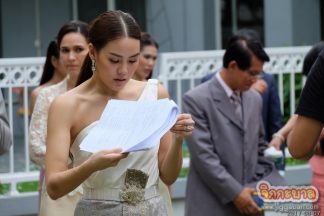 ก่อนถ่ายทำพี่เติม-ชนินทร เรียกนักแสดงบรีฟ เล่าความเป็นมาและเจตนาของตัวละครแต่ละตัว ว่าทำไปเพื่ออะไร อย่างไร ต้องเล่นแค่ไหน ซึ่งการถ่ายทำค่อนข้างยาก เป็นซีนอารมณ์ด้วยแล้ว แถมยังเป็นการถ่ายทำแบบเอ้าท์ดอร์ในเวลาที่ฝนกำลังจะตก อากาศร้อนอบอ้าว สร้างความกดดันให้เหล่าทีมงานและนักแสดงเป็นอย่างมาก แถมยังต้องใช้มุมกล้องเยอะเพื่อทำให้ภาพออกมาสมบูรณ์แบบที่สุด เพื่อให้ฉากนี้เสร็จทันก่อนที่ฝนจะเทลงมา ทันทีที่สั่งเดินกล้อง นักแสดงทุกคนต่างสวมวิญญาณตัวละครแล้วดำเนินเรื่องกันอย่างเต็มที่ และในฉากที่เจนี่ต้องปะทะกับพี่แอน ออร่าความสตอเบอรี่ฉายแสงออกมาอย่างแรงกล้า เจนี่ทำอ่อนแอ เสียงสั่นแรงน้อยเดินออกมา ก่อนจะล้มพับลงไปอย่างผู้ชำนาญการ ทุกคนในงานฮือฮา เบลล่ารีบวิ่งมาดูเพื่อนรักด้วยความตกใจ เผลอถอดมงคลแฝดอันศักดิ์สิทธิ์ในพิธีรดน้ำสังข์ ทำเอาพี่ป้องเหวอ !!ก่อนทุกคนจะเข้ามารุมเจนี่ ราวกับเป็นคนสำคัญที่สุดของงาน ได้ซีนไปเต็มๆ เลยจ้า! เจนี่ เหนื่อยนักหน่อยเพราะต้องล้มหลายรอบ เพื่อให้ได้ภาพที่สมบูรณ์แบบที่สุด ล้มแล้วล้มอีกหลังแทบจะถลอกจริงๆ อุ๊บ…งานนี้มีโชว์แผลด้วยนะคะคุณขา เจนี่ถึงกับออกปากว่า “เกลียดความสะตอของใจเริง” เล่นเองยังเกลียดเองขนาดนี้ คนดูจะรักจะเอ็นดูขนาดไหนไม่ต้องสืบค่าคุณขา