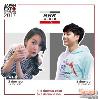 โดยทั้ง 2 จะมาร่วมงาน “เจแปน เอ็กซ์โป อิน ไทยแลนด์ 2017” (JAPAN EXPO IN THAILAND 2017) เพื่อโปรโมทกิจกรรมในบูธของ NHK WORLD โดยพบกับ พิมฐา ฐานิดา ในวันเสาร์ที่ 2 กันยายน 2560 เวลา 13.15–13.45 น. และพบ แบงค์ ธิติ ในวันอาทิตย์ที่ 3 กันยายน 2560 เวลา 13.15-13.45 น.งาน “เจแปน เอ็กซ์โป อิน ไทยแลนด์ 2017” (JAPAN EXPO IN THAILAND 2017) งานที่ได้รวมทุกเรื่องราวความเป็นญี่ปุ่น มาให้คนไทยได้สัมผัสอย่างใกล้ชิด ครบทุกมิติ ไม่ว่าจะเป็น โซนการศึกษา โซนการทำงาน โซนท่องเที่ยว โซนอาหาร โซนช้อปปิ้ง และ โซนมัลติมีเดีย ทั้งนี้งานจะจัดขึ้นระหว่างวันที่ 1 – 3 กันยายน 2017 ณ รอยัลพารากอนฮอลล์ ชั้น 5 ศูนย์การค้าสยามพารากอน