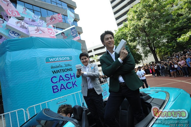 เป็นอีกหนึ่งกิจกรรมที่เรียกเสียงฮือฮาไปทั่วทั้ง ถนนพระราม 4 สำหรับงานเปิดตัวแคมเปญใหม่ล่าสุด Watsons Cash Back ช็อปสะใจ…ได้เงินคืน จาก วัตสัน ประเทศไทย ผู้นำร้านเพื่อสุขภาพและความงามอันดับหนึ่งของประเทศไทย ที่นำทีมโดย นางสาวนวลพรรณ ชัยนาม ผู้อำนวยการฝ่ายการตลาด วัตสัน ประเทศไทย พร้อมด้วยหนุ่มมาดกวน หมาก – ปริญ สุภารัตน์ มาร่วมสร้างสีสันด้วยการสวมบทพ่อบุญทุ่ม ที่นั่งมาในรถสปอร์ตสุดหรูมาแจกคูปองแคชแบ็คให้กับบรรดาแฟนคลับและผู้สัญจรไปมา บริเวณหน้าอาคารสิรินรัตน์ ถนนพระราม 4 ที่มากันอย่างคับคั่ง เมื่อวันพฤหัสบดีที่ 21 กันยายน 2560 ที่ผ่านมา ซึ่งก่อนที่จะเริ่มแจกคูปองแคชแบคหนุ่มหมากก็หยอดคำหวานจนทำเอาผู้บริหารวัตสันถึงกับยิ้มแก้มปริ เมื่อพิธีกรยิงคำถามว่า “คุณหมากรู้สึกอย่างไรในการมาร่วมงานกับวัตสันในครั้งนี้คะ?” หมาก ปริญ ตอบทันทีว่า “ดีใจครับ ปกติผมเข้าร้านวัตสันบ่อยมาก” ก่อนจะเสริมว่า “เพราะว่าร้านวัตสันมีผลิตภัณฑ์ที่ดูแลตั้งแต่หัวจรดเท้า และก็ดูแลสุขภาพด้วยครับ อย่างวิตามินหรือาหารเสริมก็สำคัญสำหรับผมในช่วงที่ต้องถ่ายละครหนักๆ”