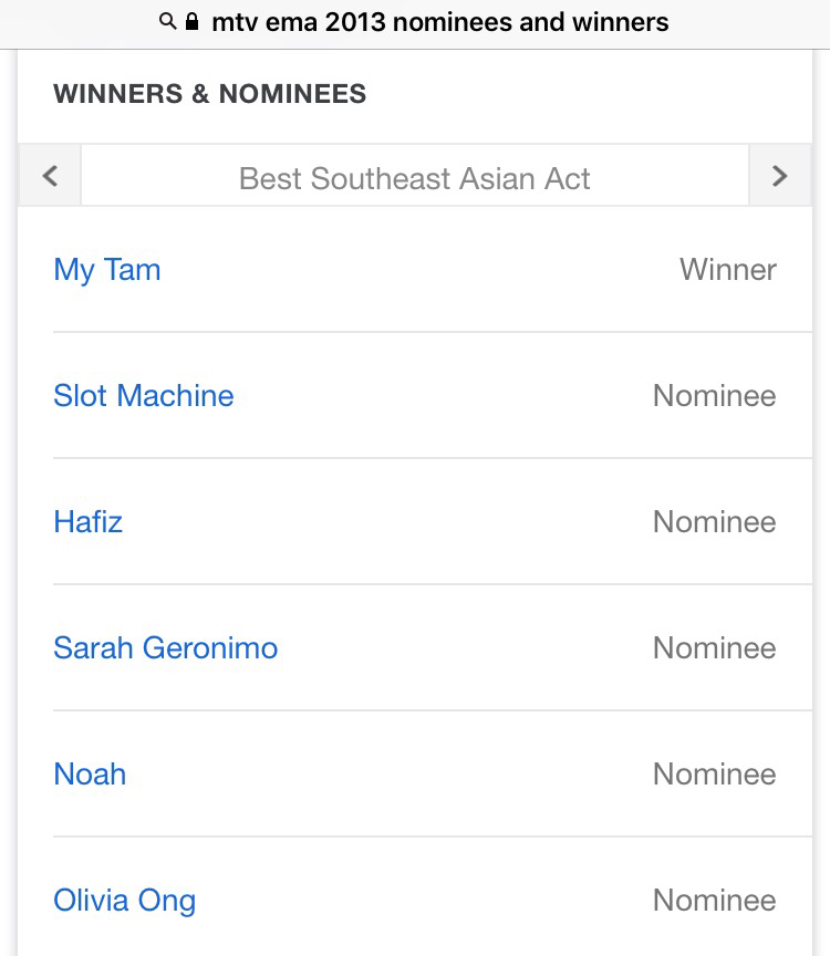 ต่อมาในปี 2012 ได้มีการมอบรางวัลให้กับประเทศในทวีปเอเชีย รางวัล Best Asian Act ผู้ได้รับรางวัลได้แก่ HAN GENG จากประเทศจีน และในปี 2013 ได้เปลี่ยนเป็นรางวัล Best Southeast Asian Act ศิลปินไทยประเทศไทยได้ถูกเสนอชื่อเข้าชิงเป็นครั้งแรก คือ วง SLOT MACHINE ซึ่งได้รับการเสนอชื่ออย่างต่อเนื่องตั้งแต่ปี 2013-2015 ปี2016 Titanium และสำหรับผู้ได้รับรางวัลปี 2013 ได้แก่ My Tam จาก ประเทศ เวียดนาม