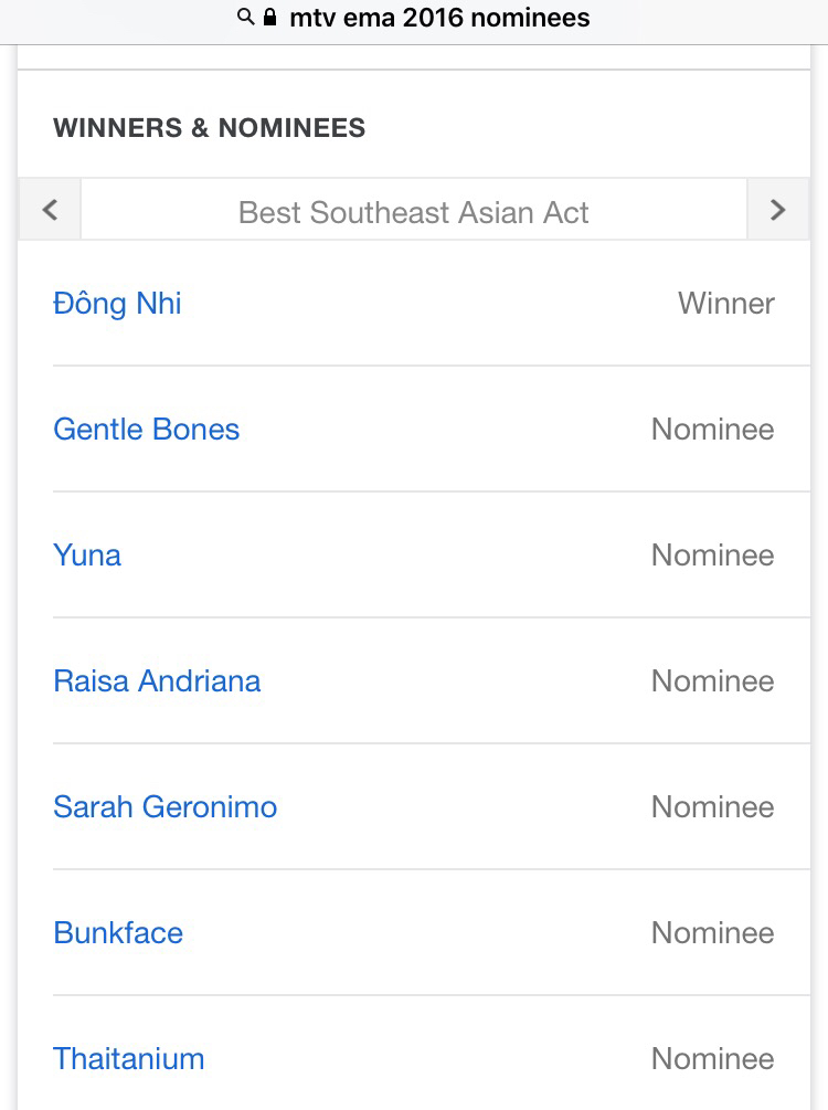 และด้วยพลัง เมียล้าน ส่งให้ เป๊ก ผลิตโชค เป็นศิลปินไทยคนแรกที่ได้ SEA Social Wildcard ร่วมเป็นผู้เข้าชิง Best Southeast Asian Act เป็นที่เรียบร้อยแล้ว และจะทำการประกาศผล ในวันที่ 4 ตุลาคม 2017 เวลาประเทศอังกฤษ และงานประกาศรางวัลจะมีขึ้นในวันที่ 12 พฤศจิกายน 2017 ที่ The SSE Arena, Wembley, London, United Kingdom