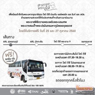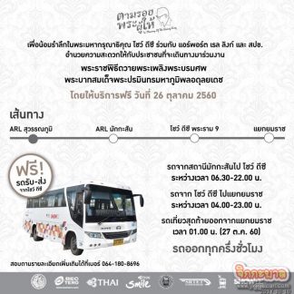 ทั้งนี้ ประชาชนผู้มีความประสงค์จะเดินทาง สามารถขึ้นรถได้ตามสถานที่นัดหมายโดยไม่เสียค่าใช้จ่าย สามารถสอบถามรายละเอียดตารางการเดินทางรถรับ-ส่ง (Shuttle bus) ฟรี โทร. 064-180-8696 หรือ www.showdc.co.th หรือ www.facebook.com/showdc.co.th