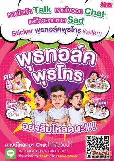 ถึงทีแฟนคลับของ 3 กูรูดีเจ อย่าง ดีเจ.เผือก พงศธร จงวิลาส, ดีเจ.ต้นหอม ศกุนตลา เทียนไพโรจน์ และ ดีเจ.ลูกกอล์ฟ ธนาธิป สุนทรรักษ์ จากช่วง “พุธทอล์ค พุธโทร” ทางคลื่นอีเอฟเอ็ม 104.5 เพลงเพราะ อารมณ์ดี จะได้เฮกันบ้างแล้ว เพราะล่าสุดได้ฤกษ์ดีปล่อยสติ๊กเกอร์ไลน์เอาใจคนที่หายใจเข้าต้องทอล์ค หายใจออกต้องแชท แต่ถ้าอยากจะหายแซด (Sad) สติ๊กเกอร์ไลน์พุธทอล์ค พุธโทร ทั้ง 24 แบบ ช่วยคุณได้! ดาวน์โหลดมาแชทได้แล้ววันนี้ที่ Line Creators Sticker Shop เพียงเสิร์ชคำว่า “EFM” หรือ “Atimeonline” อย่าลืมโหลดนะ!!