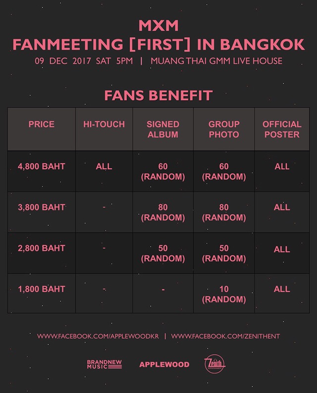 โด่งดังจากรายการ Produce 101 Season 2 สองหนุ่มหน้าใส Lim YoungMin “อิมยองมิน” และ Kim DongHyun “คิมดงฮยอน” สังกัด “Brand New Music” คู่ดูโอ้ในนาม “MXM” หลังปล่อยซิงเกิ้ลเพลง “Good Day” และ “I Just Do” และมีการจัดโชว์แคสเดบิวท์ในนามของ “MXM” อย่างเป็นทางการ พร้อมปล่อยมินิอัลบั้มชุดแรก “UNMIX” ด้วยเพลงไตเติ้ลเนื้อหาน่ารัก ๆ อย่าง “I’m the One” ผลงานการโปรดิวซ์ของ “9999” และ “Esbee” ซึ่งเคยโปรดิวซ์เพลงให้กับศิลปินชื่อดังมากมายอาทิ “I.O.I”, “NU’EST” และ “Monsta X” สร้างสีสันในวงการเคป๊อป ทำให้แฟน ๆ ของทั้งสองหนุ่มให้ได้ตื่นเต้นกันไปไม่นานมานี้ ล่าสุดผู้จัดหน้าใหม่ ใจดีอย่าง ZENITH ENTERTAINMENT (ซีนิธ เอ็นเตอร์เทนเมนต์) ร่วมกับ APPLEWOOD (แอปเปิ้ลวูด) ไม่รอช้าคว้าตัว 2 หนุ่ม “อิมยองมิน” และ“คิมดงฮยอน” ลัดฟ้ามาพบแฟนๆ ชาวไทยที่ตั้งตารอในงาน MXM FANMEETING [FIRST] IN BANGKOK วันเสาร์ที่ 9 ธันวาคม 2560 เวลา 17.00 น. ที่ จีเอ็มเอ็ม ไลฟ์เฮ้าส์ (เซ็นทรัลเวิลด์) บัตรราคา 4,800 / 3,800 / 2,800 / และ 1,800 บาท เริ่มจำหน่ายบัตรวันที่ 4 พฤศจิกายน เวลา 10.00 น. เป็นต้นไป ทาง https://www.zenithentthailand.com บอกคำเดียวห้ามพลาด MXM มีเซอร์ไพรส์รอคุณอยู่!!!