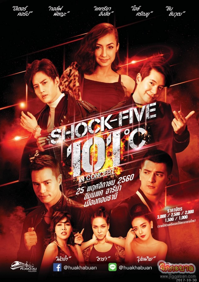 งานนี้รายได้จากการจำหน่ายบัตรคอนเสิร์ตส่วนหนึ่งยังมอบให้กับสภากาชาดไทย โดยทางผู้จัดเห็นถึงภารกิจสำคัญในการช่วยเหลือพี่น้องที่ประสบภัยต่างๆ ซึ่งจำเป็นต้องใช้งบประมาณจำนวนมาก ซึ่งถือได้ว่าเป็นกิจกรรมดีที่จะเชิญชวนทุกท่านมาร่วมสนุกส่งท้ายปี พร้อมร่วมสนับสนุนภารกิจของสภากาชาดไทยต่อไป โดยคอนเสิร์ต “SHOCK-FIVE 101 °C ทะลุองศาเดือด” กำหนดจัดแสดงในวันเสาร์ที่ 25 พฤศจิกายน 2560 ที่อิมแพค อารีน่า เมืองทองธานี เริ่มเวลา 19:00 น. เปิดจำหน่ายบัตรแล้ว ราคาบัตร 3,000 / 2,500 / 2,000 / 1,500 / 1,000 บาท สามารถจองผ่านทางไทยทิคเก็ตเมเจอร์(TTM) ทุกสาขา หรือ Line@ หัวขบวน