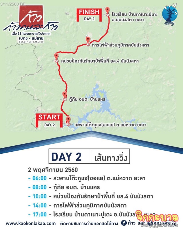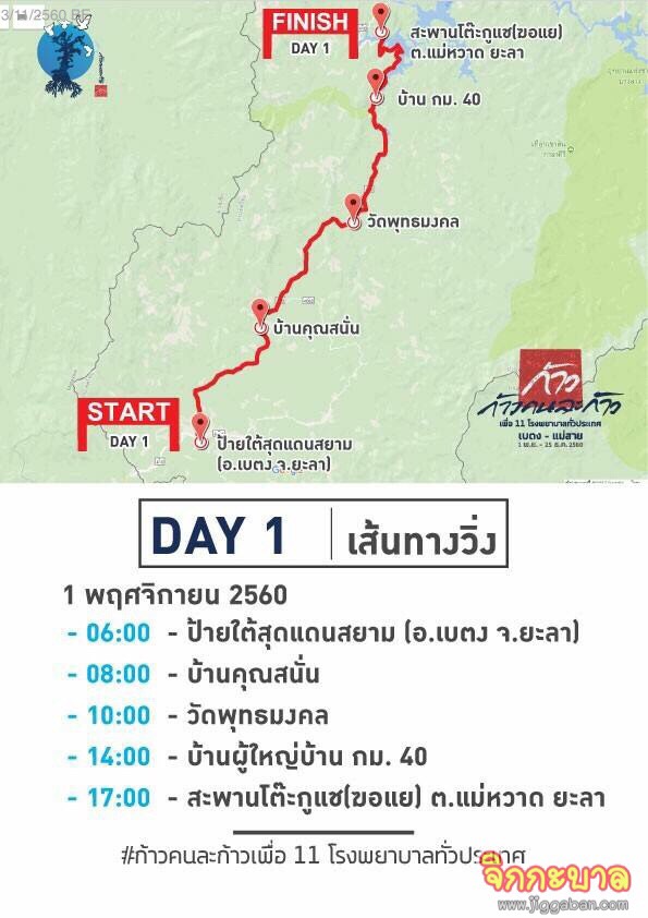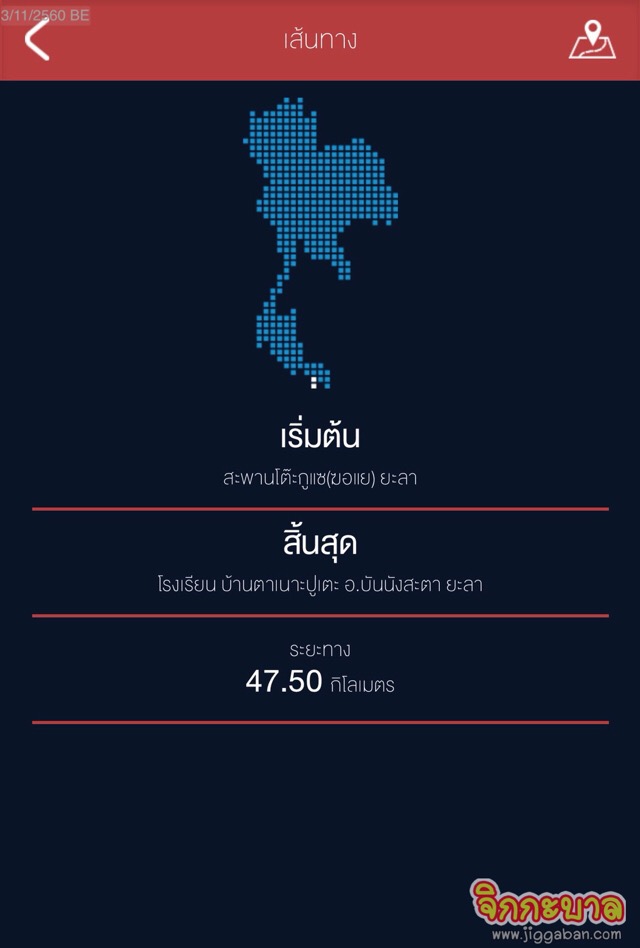 เริ่มวิ่งจาก สะพานโต๊ะกูเเช – โรงเรียนบ้านตะเนาปูเตะ จ.ยะลา รวมระยะทาง 47.5 กิโลเมตร