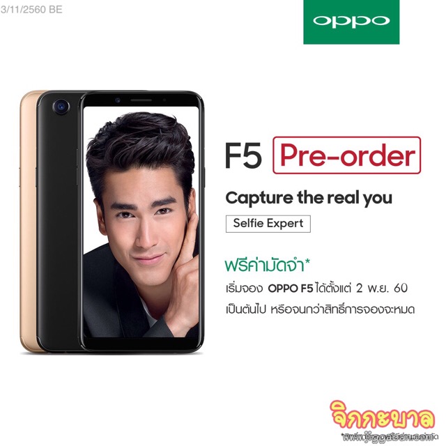 ยกระดับคุณภาพของภาพถ่ายเซลฟี่ไปอีกขั้น นำโดยคุณชานนท์ จิรายุกุล รองกรรมการผู้จัดการใหญ่ บริษัท ไทย ออปโป้ จำกัด ที่ได้ประกาศเปิดตัว ณเดชน์ คูกิมิยะ ในฐานะ แบรนด์แอมบาสเดอร์คนล่าสุดของ OPPO และยังมีเหล่าสมาชิกจากออปโป้แฟมิลี่มาร่วมสร้างความสนุกสนานให้กับงานครั้งนี้อีกด้วย โดย OPPO F5 จะเริ่มเปิดให้จองได้ตั้งแต่วันที่ 2-10 พฤศจิกายน 2560 และวางจำหน่ายในประเทศไทยในวันที่ 11 พฤศจิกายนนี้ 2560 สนนราคา 9,990 บาท