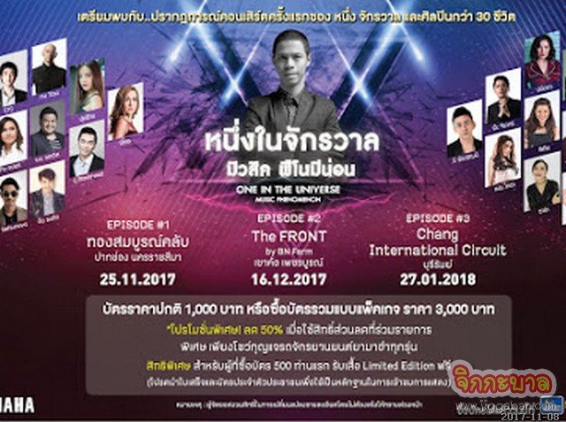 “คอนเสิร์ตครั้งที่พิเศษที่สุดในชีวิตของ หนึ่ง จักรวาล” ไม่เชื่อก็ไปดูกันเลย!! ครั้งแรกที่จะได้แสดงความเป็นตัวตนของหนึ่ง จักรวาล อย่ารอช้า ซื้อบัตรแล้วไปสนุกด้วยกันที่ ทองสมบูรณ์คลับ ปากช่อง วันที่ 25 พฤศจิกายน 2560
