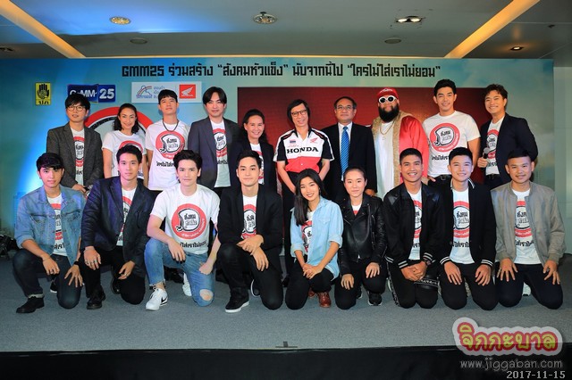 โดยมีคุณฉอด-สายทิพย์ มนตรีกุล ณ อยุธยา ประธานเจ้าหน้าที่บริหารสายธุรกิจ จีเอ็มเอ็ม แชนแนล จำกัด, คุณอารักษ์ พรประภา รองประธานกรรมการบริหาร บริษัท เอ.พี.ฮอนด้า จำกัด, คุณกอบชัย บุญอรณะ รองอธิบดีกรมป้องกันและบรรเทาสาธารณภัย กระทรวงมหาดไทย พร้อมด้วยเหล่าดารา นักแสดง อาทิ เป้-อารักษ์ อมรศุภศิริ, แคทรียา อิงลิช, เก้า-จิรายุ ละอองมณี, เต๋า-เศรษฐพงศ์ เพียงพอ, อาร์ต-พศุตม์ บานแย้ม, เฟย-ภัทร เอกแสงกุล, ปังปอนด์-อัครวุฒิ มังคลสุต, ก้อย-อรัชพร โภคินภากร นอกจากนี้ยังมี 2 พิธีกร ดีเจเป้-วิศวะ กิจตันขจร, ดีเจเจม-ณัฏฐ์ปวินท์ กุลกัลยาดี และมี กอล์ฟ ฟักกลิ้งฮีโร่ (พรีเซ็นเตอร์สังคมหัวแข็ง) Feat. น้องหญิง-ชนิตา วชิรเสรีชัย วงมีเทน (ชนะเลิศ Hotwave Music Awards 2017) โชว์เพลงสังคมหัวแข็ง ร่วมกันรณรงค์ ย้ำเตือนคนไทยให้ใส่หมวกกันน็อกทุกครั้ง เพื่อความปลอดภัย ในงานแถลงข่าว GMM25 ร่วมสร้างสังคมหัวแข็ง นับจากนี้ไป “ใครไม่ใส่เราไม่ยอม” ณ บริเวณล็อบบี้ อาคาร จีเอ็มเอ็ม แกรมมี่ เพลส (อโศก)