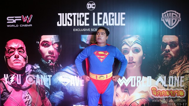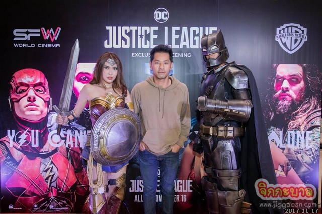 เมื่อวันพุธที่ 15 พฤศจิกายน 2560 เวลา 19.00 น. โรงภาพยนตร์ เอส เอฟ เวิลด์ ซีเนม่า ศูนย์การค้าเซ็นทรัลเวิลด์ จัดงาน “Exclusive Screening Justice League” ณ โรงภาพยนตร์ มาสเตอร์การ์ด ซีเนม่า เอส เอฟ เวิลด์ ซึ่งภายในงานเรียกว่าเป็นการรวมพล ทั้งคอหนังและแฟนคอมมิค ที่ให้ความสนใจ มาร่วมงานเปิดตัวกันมากมายเลยทีเดียว รวมถึงเหล่าบรรดาคนดัง ทั้งศิลปินดารา ดีเจ พิธีกร เน็ตไอดอล อาทิ เทย่า โรเจอร์ส แคน-อติรุธ ดีเจจอมยุ่ง และ ดีเจเจได แห่ง mono fresh 91.5 ,ท็อปแท็ป ณภัทร (นักแสดง ค่าย GDH ), ลิลลี่ แม็คกร๊าธ ( นักแสดงจากละครแรงเงา ภาค1และ 2 ) ,น้ำนุ่น อาทิตยา ,อ๊อฟ ชัยนนท์ พิธีกรรายการ ONE บันเทิง ฯลฯ ได้พากันมาร่วมชมภาพยนตร์กันแน่นโรง