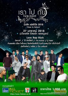 Close to Nature” ในวันเสาร์ที่ 27 มกราคม 2018 สถานที่โอเอซิส รีสอร์ท เพชรบูรณ์ งานนี้ไม่ธรรมดาโดยเฉพาะคอดนตรีเพราะมีครบทุกรสชาติทั้งเพลงรัก แร๊พ ร็อค ที่สายชิวห้ามพลาด!! เพราะเหล่าศิลปินขนพลังยกทัพมาฝากแฟน ๆ กันอย่างต่อเนื่อง อาทิ “วัชราวลี , โต๋ ศักดิ์สิทธิ์ ,ป้าง นครินทร์,ว่าน ธนกฤต, ตู่ ภพธร,โจอี้บอย & ก้านคอคลับ , บุดด้า เบลส , ดีเจ สไปด้ามังกี้ , มัสเก็ตเทียร์, เคลียร์” ดูรายละเอียดสามารถติดตามได้ที่ www.facebook.com/raopaikunproject จองบัตรได้แล้ววันนี้ที่ Counter Service (ALLTICKET) ใน 7-11 ทุกสาขาทั่วประเทศ บัตรราคา 1,200 บาท