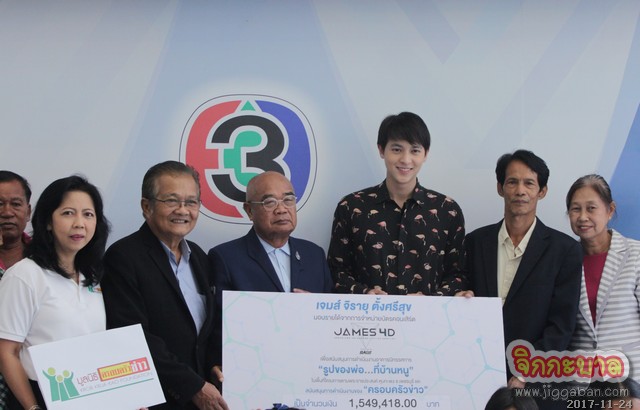 วันพฤหัสบดีที่ 23 พฤศจิกายน 2560 บริเวณชั้น G อาคารมาลีนนท์ทาวเวอร์ 2พระเอกหนุ่ม เจมส์-จิรายุ ตั้งศรีสุข นักแสดงสถานีวิทยุโทรทัศน์ไทยทีวีสีช่อง 3 เดินทางมามอบรายได้จากการจำหน่ายบัตรคอนเสิร์ต JAMES 4D ให้แก่คณะผู้บริหารมูลนิธิครอบครัวข่าว นำโดย คุณอัชฌา สุวรรณปากแพรก รองประธานกรรมการ คุณบริสุทธิ์ บูรณะสัมฤทธิ กรรมการและเลขานุการ และคุณดวงรัตน์ มหาวนิช กรรมการและผู้ช่วยเลขานุการ ร่วมด้วย คุณยันตกิจ ภูมิประเทศ ประธานคณะกรรมการอาคารนิทรรศการ “รูปของพ่อ…ที่บ้านหนู” โครงการตามพระราชประสงค์หุบกะพง จ.เพชรบุรี โดยเงินรายได้จากการจำหน่ายบัตรคอนเสิร์ต JAMES 4D นำไปสนับสนุนการดำเนินงานอาคารนิทรรศการ “รูปของพ่อ…ที่บ้านหนู” เป็นจำนวนเงิน 774,709 บาท และสนับสนุนการดำเนินงานของ มูลนิธิครอบครัวข่าว เป็นจำนวนเงิน 774,709 บาท รวมเป็นเงินที่มอบทั้งสิ้นจำนวน 1,549,418 บาท