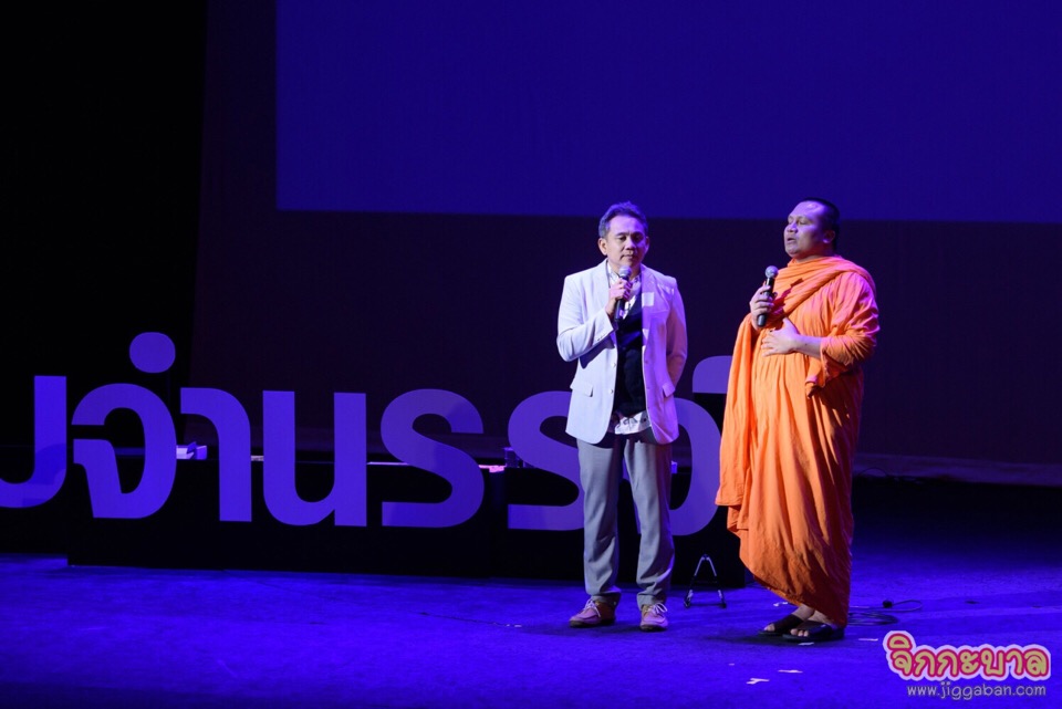 บรรยากาศภายในวันงานคึกคักไปด้วยเหล่าแฟนๆที่มาร่วมชมความสนุกของทอล์กโชว์และมาให้กำลังใจ สมจุ้ย- ศุ บุญเลี้ยง มากมาย บริเวณด้านหน้างานยังมีบูทสินค้าแจกฟรีและของที่ระลึก รวมไปถึงบูธรวมงานเขียนต่างๆให้ผู้ที่เข้าชมงานได้ซื้อติดไม้ติดมือกลับไป ก่อนเข้าไปชมความสนุกข้างในอีกด้วย เวลา 14.00 น. บนเวทีเริ่มเข้าสู่ความสนุก โดยมีการเปิดเพลงที่แต่งขึ้นมาใหม่สำหรับทอล์กโชว์ครั้งนี้ ชื่อเพลง “จำนรรจ์ใจ” ทำเอาคนดูอมยิ้มไปกับเนื้อหาเพลงต่อด้วยการเปิดตัว สมจุ้ยที่ออกมาทักทายคนดู พร้อมกับเรื่องราวสนุกๆที่เริ่มเล่าตั้งแต่ที่มาที่ไปของการจัดงาน การเล่าเรื่องราวของมูลนิธิ จากนั้นก็ได้นิมนต์พระสมปอง “พระมหาสมปอง ตาลปุตฺโต” มาให้ความรู้ปนความสนุก เกี่ยวกับคุณธรรม 4 ประการ ศีลห้า เรื่องราวของผีๆ พร้อมประเด็นหยอกล้อสังคมไทยโดยมีสมจุ้ยขึ้นมาร่วมแจมและนิมนต์พระมหาสมปองกลับวัดสร้อยทอง