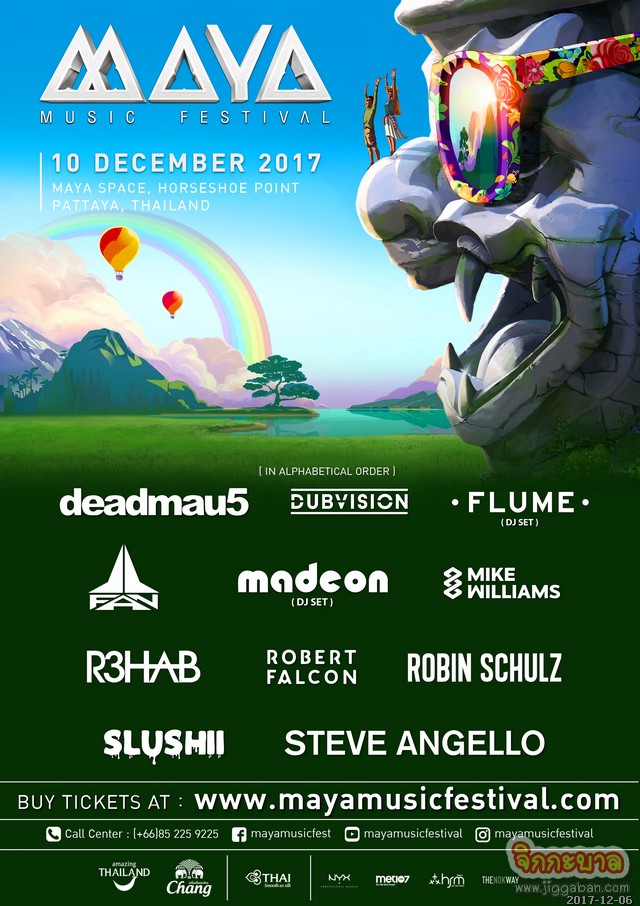 MAYA Music Festival เทศกาลมายามิวสิคเฟสติวัล (MAYA Music Festival) เทศกาลดนตรี ที่มาพร้อมกับเวทีหนุมานขนาดใหญ่ โดยได้รับแรงบันดาลใจจากวรรณคดีชื่อดังของไทยอย่าง “รามเกียรติ์” จะจัดขึ้นเป็นครั้งที่ 4 ณ MAYA Space, Horseshoe Point สถานที่ใหม่ที่เต็มไปด้วยหญ้าและบรรยากาศที่โอบล้อมด้วยภูเขา ในเมืองพัทยา ประเทศไทย ในวันอาทิตย์ที่ 10 ธันวาคม 2560