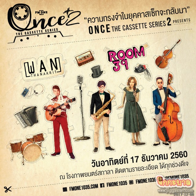 “ONCE THE CASSETTE SERIES 2” วันอาทิตย์ที่ 17 ธันวาคม 2560 (ประตูเปิด 18.30 น.) ณ โรงภาพยนตร์ สกาล่า ติดตามรายละเอียดเพิ่มเติมได้ทาง FM ONE 103.5 ช่องทางออนไลน์ facebook.com/fmone1035, IG:fmone1035, www.fmone1035.com และ Application : Independent