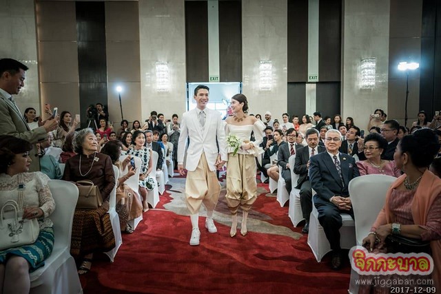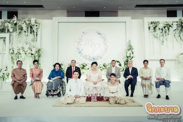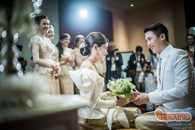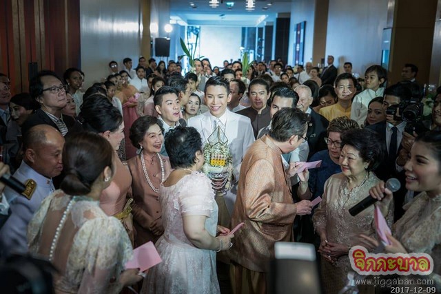 บรรยากาศภายในพิธีหมั้นแบบไทย เป็นไปด้วยความดูอบอุ่น โดยช่วงเวลา 9.49 น. เริ่มตั้งขบวนขันหมากโดย พระเจ้าวรวงศ์เธอ พระองค์เจ้าโสมสวลี พระวรราชาทินัดดามาตุ เสด็จนำขบวนขันหมากพร้อมด้วย นายวิรัช ชินวินิจกุล องคมนตรี เถ้าแก่เจรจาสู่ขอ และ คุณหญิงสุจิตรา มงคลกิติ เป็นญาติผู้ใหญ่พร้อมด้วย สุทธิเกียรติ จิราธิวัฒน์ และ อาภัสรา หงสกุล พ่อแม่ฝ่ายเจ้าบ่าว เป็นแม่งานใหญ่ ส่วนฝ่ายเจ้าสาวมี ศ.พิเศษ พรเพชร วิชิตชลชัย เป็นเถ้าแก่ และ ประวิทย์ มาลีนนท์ เป็นญาติผู้ใหญ่ พร้อมด้วย ไมเคิล เจ ฮอนโนลด์ และ อรศรี ฮอนโนลด์ พ่อแม่ฝ่ายเจ้าสาว ท่ามกลางบรรยากาศอบอุ่นของ แขกผู้ใหญ่และเพื่อนๆ วงการบันเทิง อาทิ อรัญญา มาลีนนท์, ปัญญชลี เพ็ญชาติ, มยุรฉัตร เหมือนประสิทธิเวช, สรวงสุดา ชลลัมพี, ณัฏฐนันท์ ฉวีวงษ์, ทาริกา ธิดาทิตย์, สมรักษ์ ณรงค์วิชัย, กอบสุข จารุจินดา, มยุรา-ธาดา เศวตศิลา, ปิยวดี มาลีนนท์ ควงคู่แฟนหนุ่ม มาวิน ทวีผล, ปิ่นกมล มาลีนนท์, ณัฐวุฒิ ชลลัมพี, ศรีริต้า เจนเซ่น, ตรีชฎา เพชรรัตน์, ภูผา เตชะณรงค์, พชร จิราธิวัฒน์, แพร พิมพิศา จิราธิวัฒน์, ชุติมณฑน์ สกุลไทย, ศิวัช คูสกุลธรรม, ลภัสลัล จิรเวชสุนทรกุล ที่มาร่วมแสดงความยินดี
