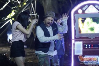 “โอ๊ต ปราโมทย์ ปาทาน” เผยว่าถึงบทบาทที่ตัวเองได้รับ และเอ็มวีตัวนี้ว่า “ต้องถือเป็นความสนุกครบรสมาก ๆ เพราะทุกๆคนมาช่วยกันร้องคนละท่อน สองท่อน โดยในเอ็มวีนี้เราใช้เพลง เงา ของ พี่หรั่ง ร็อคเคสต้า มาเป็นเพลงประกอบภาพยนตร์ครับ เนื้อเพลงท่อนฮุคก็จะร้องว่า วิ่ง ๆๆๆ วิ่ง ๆๆๆ วิ่ง ไป ๆๆ… แล้วทุกคนก็จะวิ่ง ๆๆ ในแบบของตัวเอง ซึ่งก็เข้ากับหนังมาก เพราะในเรื่องทุกคนมีความกลัวผี จนต้องวิ่งหนีกันป่าราบ เริ่มจากที่ ผีเปรมิกา ถามทุกคนว่า ร้องคาราโอเกะได้มั้ย? ทุกคนต้องร้องเพลง ใครร้องดีก็มีรอด ร้องไม่รอดก็มีตาย บอกใบ้ว่าผมก็ได้ร้องเพลง แต่ตายไม่ตายต้องไปดูในโรงภาพยนตร์กัน ผมว่ามันโดนมาก ๆ ส่วนคาแร็คเตอร์ผมในเรื่องชื่อ พี่เคร่ง เป็นช่างภาพฝีมือเทพ เป็นหัวหน้าแก๊งค์ชู๊ตดิ เป็นบริษัทที่เป็นเหมือนโปรดักชั่นไปถ่ายทำมิวสิควิดีโอที่รีสอร์ทที่เกิดเรื่องราวขึ้น ออกจะเป็นคนขี้โมโห ขี้หงุดหงิด ปากจัด ด่าลูกน้อง จะตรงข้ามกับตัวเองนอกจอมาก ๆ ที่เป็นคนปากหวาน จิตใจดี (หัวเราะ) ก็ด่าทั้งเรื่องโดยไม่มีเหตุผล ตอนที่เขาส่งบทมาให้อ่านก็เออแปลกดี ตลกดี ไม่เคยเล่นหนังผี ทำให้กลับไปคิดถึงบ้านผีปอบ น่าสนุกดี นักแสดงที่เล่นกันก็รู้จักกันหมดด้วย ในเรื่องจะไม่เชื่อเรื่องผี จนได้เจอเองก็จะเชื่อ มันมีการพัฒนาของผีนะเป็นผีที่มีมิติ มีทั้งความน่ากลัว ตลก และแปลก สุดท้ายจะได้เห็นเหตุผลว่าทำไมถึงมาเป็นผีแบบนี้ ผมเองในเรื่องนี้ไม่ค่อยตลก แต่ถ้ามองให้ตลกก็ตลก จะตลกในคาแร็คเตอร์ความขี้โมโหแตกต่างจากที่เคยเล่นมาก ไม่เคยเล่นแบบนี้ สุดท้ายก็จะเฉลยว่าทำไมถึงขี้โมโหแบบนี้ ทุกครั้งที่เล่นหนังท้าทายครับ ได้เปลี่ยนอะไรบ้าง เชื่อว่าจะเป็นหนังผีอีกแนวที่ครบทุกอรรถรส เลยอยากให้ดูด้วยมุมของผู้กำกับเป็นคนทำโฆษณา รับรองฮามาก ๆ ลองดูจากเอ็มวีที่ปล่อยออกไป มีมุมมองแปลกใหม่ภาพ สี แสง ไม่ได้เห็นกันบ่อย ๆ เป็นหนังผีทางเลือกใหม่ที่อยากให้ไปชมกันครับ 28 ธันวาคมนี้ในโรงภาพยนตร์ครับ”