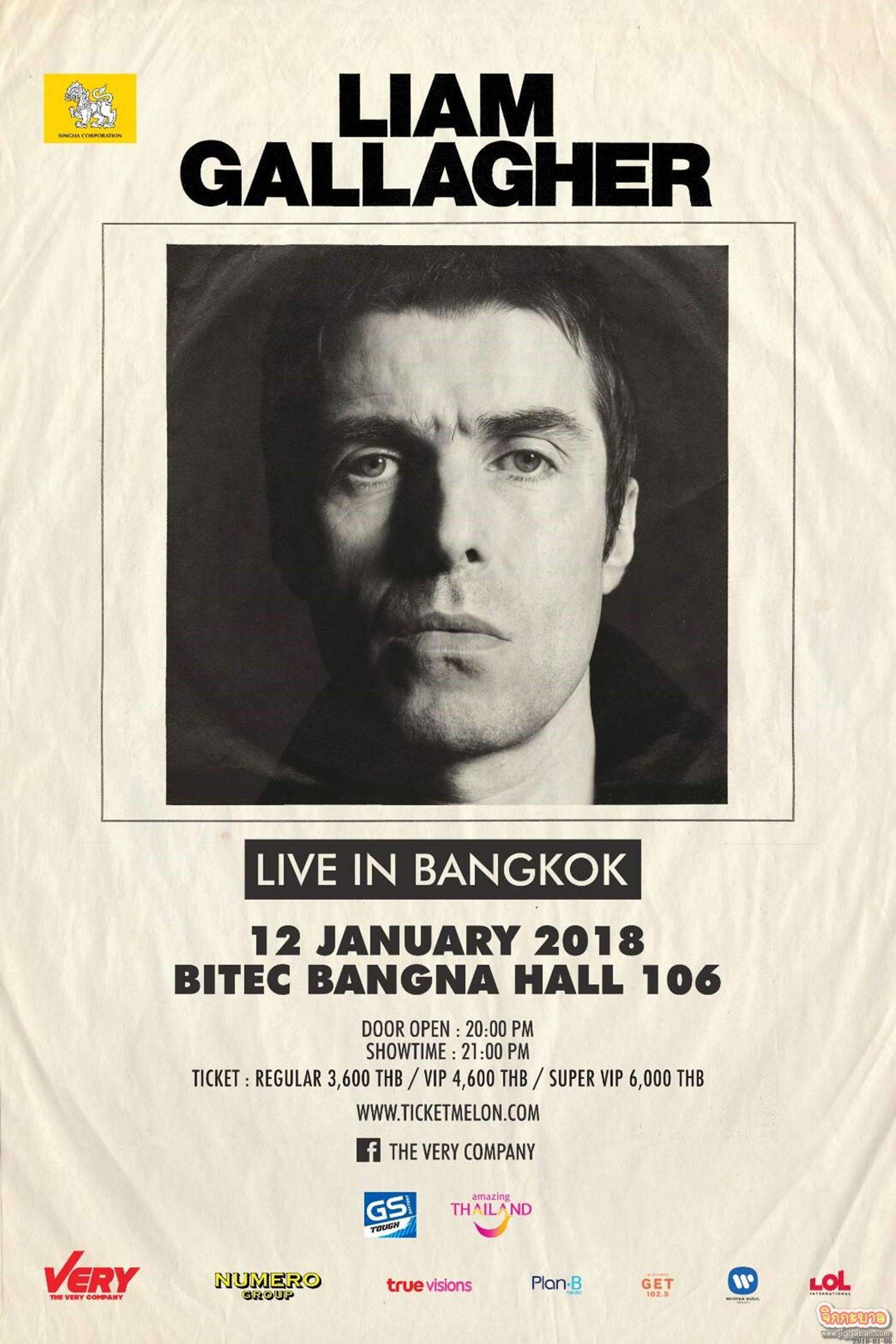 เตรียมพบกับตำนานเพลงร็อคคนนี้ได้ใน “LIAM GALLAGHER LIVE IN BANGKOK” วันศุกร์ที่12 มกราคม 2561 ที่ BITEC BANGNA HALL 106ประตูเปิด 19:00 น. และการแสดงเริ่ม 21:00 น. บัตรRegular ราคา 3,600 บาท และ VIP ราคา 4,600 และ Super VIP Lounge ราคา 6,000 บาท ซื้อบัตรได้ที่ http://www.ticketmelon.com/event/LiamGallagher
