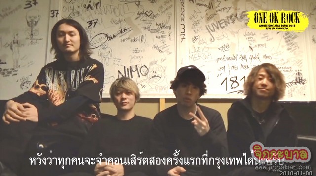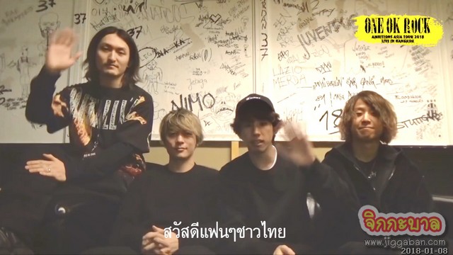 โดยก่อนที่หนุ่มๆ ทั้งสี่ ทากะ (TAKA – ร้องนำ), โทรุ (TORU – กีต้าร์), เรียวตะ (RYOTA – เบส) และ โทโมยะ (TOMOYA – กลอง) สมาชิก วัน โอเค ร็อก จะเก็บกระเป๋าขนเครื่องดนตรีมุ่งหน้าสู่ประเทศไทย พวกเขาได้ส่งข้อความถึงแฟนๆ ชาวไทยผ่านทางวิดีโอคลิปด้วยว่า “สวัสดีครับ พวกเรา ONE OK ROCK สวัสดีแฟนๆ ชาวไทย หวังว่าทุกคนจะจำคอนเสิร์ตสองครั้งแรกที่กรุงเทพฯ ได้นะครับ พวกคุณสุดยอดมาก และเราเองก็สนุกมากๆ เลย เราจะกลับไปที่กรุงเทพฯ อีกครั้งในวันที่ 18 มกราคมครับ ในคอนเสิร์ต ONE OK ROCK AMBITIONS ASIA TOUR 2018 Live in Bangkok จัดที่ IMPACT ARENA แล้วเจอกันครับ”