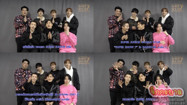 “สวัสดีครับ พวกเรา SUPER JUNIOR ครับ เอลฟ์ไทยทุกคนครับ รู้ข่าวกันหรือยังครับ? ข่าวอะไรครับ? ผมคิดว่า น่าจะยังไม่รู้กันนะครับ คุณอึนฮยอกครับ ช่วยบอกแฟน ๆ ของเราหน่อยครับ ~ ผมตื่นเต้นจัง ที่จะได้เป็นคนบอกข่าวดีนี้ พวกเรา SUPER JUNIOR กำลังจะได้ไปเจอกับเอลฟ์ไทยในคอนเสิร์ต SUPER JUNIOR WORLD TOUR “SUPER SHOW 7” in BANGKOK นะครับ!! แค่ได้ยินก็ตื่นเต้นกันแล้วใช่ไหมครับ ~ มาเจอกับพวกเราได้ในวันอาทิตย์ที่ 28 มกราคม 2561 นี้ ที่อิมแพ็ค อารีน่า เมืองทองธานี นะครับ ในคอนเสิร์ตนี้ ทั้งอึนฮยอก และชินดง ก็ได้มีส่วนร่วมในการกำกับด้วยตัวเอง รวมถึงพวกเราก็ช่วยกันด้วยครับ ก็หวังว่าทุกคนจะชื่นชอบคอนเสิร์ต SUPER SHOW 7 ของเรานะครับ พวกเราคือ SUPER JUNIOR ~”