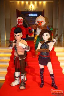 งานวันนี้ คราคร่ำ อบอุ่น เนืองแน่น ไปด้วยแขกผู้มีเกียรติถ้วนทั่วทุกวงการ ทั้งคนแวดวงบันเทิง ศิลปะ เหล่าแอนิเมเตอร์ทั่วฟ้าเมืองไทย ดารา นักร้อง เซเลป แขกจาก “เอ็กฟอร์แมท ฟิล์มส์” และ ”เอ็ม พิคเจอร์ส” ที่ได้ให้เกียรติพร้อมใจกันมาแสดงความยินดี ในงานกาล่าพรีเมียร์ การฉายภาพยนตร์แอนิเมชั่นครั้งนี้ นอกจากผู้ให้เสียงพากย์ตัวละครโดย “กนกฉัตร มรรยาทอ่อน (ไต้ฝุ่น KPN) , “วรฤทธิ์ เฟื่องอารมย์” , “สาวิตรี สุทธิชานนท์” (โบว์ AF5) , “รัชพล แย้มแสง” (มิวสิค AF4) ร่วมด้วย “ศิริชัย เจริญกิจธนกุล”, “นิมิตร ลักษมีพงษ์” , “สะอาด เปี่ยมพงศ์สานต์” พร้อมด้วย 2 ผู้กำกับภาพยนตร์โดย “กันย์ พันธ์สุวรรณ” , “ณัฐ ยศวัฒนานนท์” แล้ว บุคคลเหล่านี้ก็ร่วมเดินพรมแดงในงานด้วยความยินดี