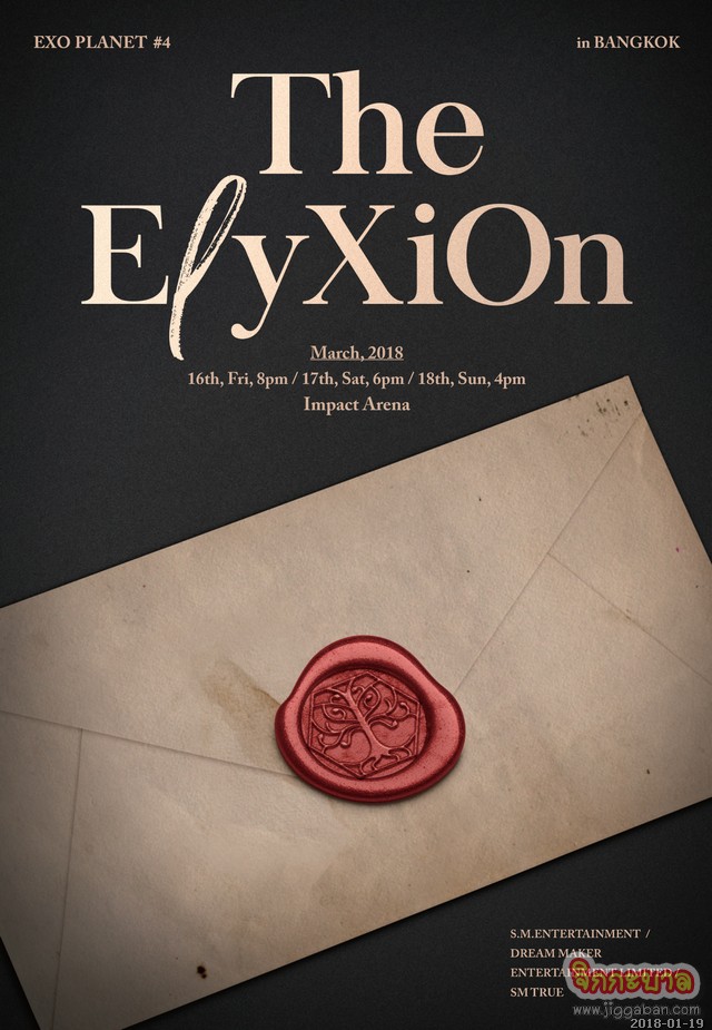 SM True (เอสเอ็ม ทรู) ส่งคำเชิญสู่ “The EℓyXiOn” (ดิ แอลลีเชี่ยน) สรวงสวรรค์ของราชาแห่งเค-ป๊อบ ‘EXO’ (เอ็กซ์โซ) มหากาพย์การแสดงสุดยิ่งใหญ่ เตรียมเปิดฉากให้สัมผัสความเหนือชั้นกันอีกครั้ง ในคอนเสิร์ตเต็มรูปแบบครั้งที่ 4 “EXO PLANET #4 – The EℓyXiOn – in BANGKOK” (เอ็กซ์โซ แพลนเน็ต นัมเบอร์ โฟร์ – ดิ แอลลีเชี่ยน – อิน แบงค็อก) ที่จะถูกจัดขึ้นอย่างอลังการกว่าเดิมถึง 3 รอบการแสดง ในวันศุกร์ที่ 16 (20.00 น.), เสาร์ที่ 17 (18.00 น.) และอาทิตย์ที่ 18 (16.00 น.) มีนาคม 2561 ณ อิมแพ็ค อารีน่า เมืองทองธานี