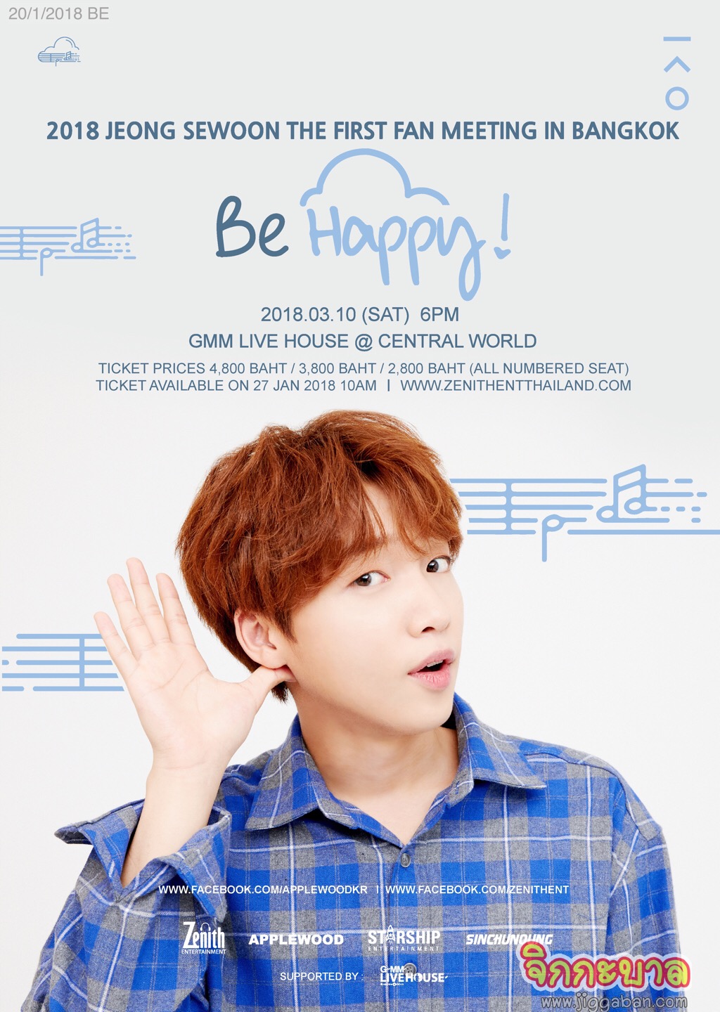 เรียกได้ว่ากระแสของ JEONG SEWOON (จอง เซอุน) หนุ่มน้อยหน้าตาดีพร้อมพรสวรรค์ทางดนตรีจากค่าย Starship Entertainment ที่โด่งดังจากรายการวาไรตี้ชื่อดังอย่าง PRODUCE 101 SEASON 2 นั้นยังคงดังต่อเนื่องไม่ขาดสายทั้งในประเทศเกาหลีและประเทศไทย ทั้งเพลงติดชาร์ตอย่างเพลง JUST U จากมินิอัลบั้ม THE 1ST MINI ALBUM PART.1 [EVER] แถมเร็วๆ นี้กำลังจะปล่อยผลงานใหม่ THE 1ST MINI ALBUM PART.2 [AFTER] อีกด้วย จากเสียงตอบรับที่ดีอย่างต่อเนื่อง ทำให้ผู้จัดใจดีอย่าง ZENITH ENTERTAINMENT (ซีนิธ เอ็นเตอร์เทนเมนต์) , APPLEWOOD (แอปเปิ้ลวูด) และ SINCHUNOUNG AGENCY (ชินชอนอง เอเจนซี่) ทนกระแสเรียกร้องของแฟนๆ ไม่ไหว รีบคว้าตัวหนุ่มน้อยเสียงหวาน JEONG SEWOON (จอง เซอุน) มาให้แฟนชาวไทยได้กรี๊ดกันแบบใกล้ชิดแบบที่บอกได้เลยว่างานนี้ฟินกันทุกที่นั่งแน่นอนกับงาน JEONG SEWOON THE FIRST FAN MEETING IN BANGKOK “BE HAPPY!” วันเสาร์ที่ 10 มีนาคม 2561 เวลา 18.00 น. ที่ จีเอ็มเอ็ม ไลฟ์เฮ้าส์ (เซ็นทรัลเวิลด์) บัตรราคา 4,800 บาท / 3,800 บาท และ 2,800 บาท เริ่มจำหน่ายบัตรวันที่ 27 มกราคม 2561 เวลา 10.00 น. เป็นต้นไป ทาง https://www.zenithentthailand.com อย่าลืมมาสร้างความสุขไปพร้อมกับรอยยิ้มและเสียงหวานๆจากหนุ่มน้อยจองเซอุนกันเยอะๆนะคะ