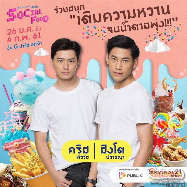 เทอร์มินอล 21 โคราช ส่งความฟินสุดขีดให้สาวกพีรญา ได้ใกล้ชิดแบบเอ็กซ์คลูซีฟกับคู่จิ้นฮอตสุดแห่งปีจาก Sotus S The Series คริส พีรวัส และ สิงโต ปราชญา โดยเทอร์มินอล 21 โคราช จะสุ่มผู้โชคดี 5 ท่านมาป้อนขนมกับสองหนุ่มในงาน Social Food เทศกาลที่รวบรวมหลากหลายร้านอาหารที่โด่งดังในโลกโซเชียลมากกว่า 40 ร้าน ในวันเสาร์ที่ 3 กุมภาพันธ์ 2561 เวลา 17.00 น. เป็นต้นไป เพียงทำตามกติกาง่ายๆ ก็สามารถรอลุ้นเป็น 5 ผู้โชคดี!!