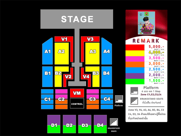 สำรองโซน V3, V4, A3, A4, B3, B4, C3, C4, D3, เเละ D4 ไว้ให้เฉพาะผู้ซื้อบัตรที่จุดจำหน่ายเท่านั้น (เคานเตอร์ไทยทิคเก็ต, เมเจอร์ อีจีวี, ไปรษณีย์ไทย, เทสโก้ โลตัส, Franchise และคอลเซนเตอร์)
