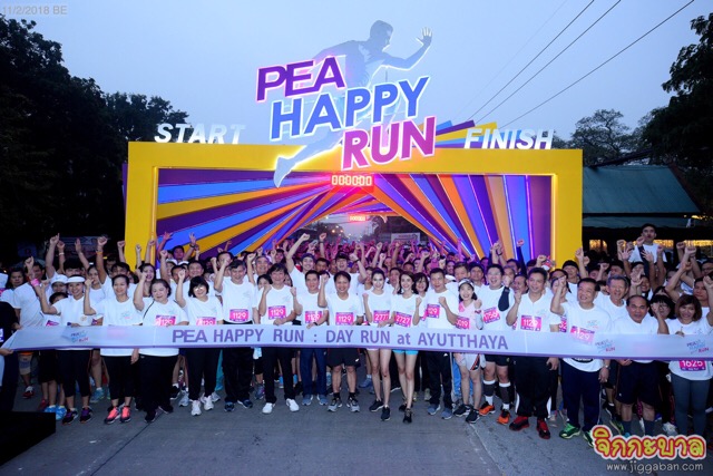 การวิ่ง PEA HAPPY RUN ที่จังหวัดพระนครศรีอยุธยา แม้จะเป็นการวิ่งยามเช้าตรู่ แต่เนื่องจากเป็นการวิ่งแบบ Fun Run ด้วยระยะทางเพียง 5.41 กิโลเมตรเท่านั้น ทำให้เหล่านักวิ่งที่มาเตรียมตัวกันตั้งแต่ฟ้ายังไม่สว่าง ต่างพาลูกหลานมาร่วมสร้างสุขภาพที่ดีร่วมกันและด้วยบรรยากาศของสถานที่จัดงานที่รายล้อมไปด้วยศิลปวัฒนธรรมอันทรงคุณค่าของไทยที่ได้รับการยกย่องให้เป็นมรดกโลก ประกอบกับสภาพดินฟ้าอากาศที่เป็นใจ ทำให้นักวิ่งทุกท่านฟิตร่างกายกันแบบไม่มีอิดโรยกันแม้แต่น้อย ก่อนปล่อยตัววิ่ง ได้รับเกียรติจาก นายเสริมสกุล คล้ายแก้ว ผู้ว่าการการไฟฟ้าส่วนภูมิภาค เป็นประธานเปิดกิจกรรมในครั้ง โดยมีตัวแทนศิลปินดารา ได้แก่ บอย – ปกรณ์ ฉัตรบริรักษ์ , หยาดทิพย์ ราชปาล , น้ำฝน – พัชรินทร์ ศรีวสุภิรมย์ และ รอน – ภัทรภณ โตอุ่น หรือ รอน AF ร่วมวิ่งสร้างสีสัน สร้างรอยยิ้มและความเป็นกันเองให้กับเหล่านักวิ่งและประชาชนโดยรอบที่มาคอยให้กำลังใจ ทำให้บรรยากาศโดยรวมเป็นไปอย่างคึกคัก และนอกจากจะร่วมวิ่งแล้ว เหล่าศิลปินดารายังอาสาแจกของรางวัลต่างๆให้กับ นักวิ่ง โดยไฮไลท์สุดพิเศษนอกจากของรางวัลใหญ่ที่ทางการไฟฟ้าส่วนภูมิภาคจัดเตรียมไว้ให้ได้ลุ้นกันแล้ว หนุ่มบอย ยังนำหมวกสุดรัก มาประมูลเพื่อสมทบทุนเงินบริจาคในครั้งนี้อีกด้วย โดยมีแฟนคลับใจบุญประมูลไปในราคาถึง 8,000 บาทเลยทีเดียว